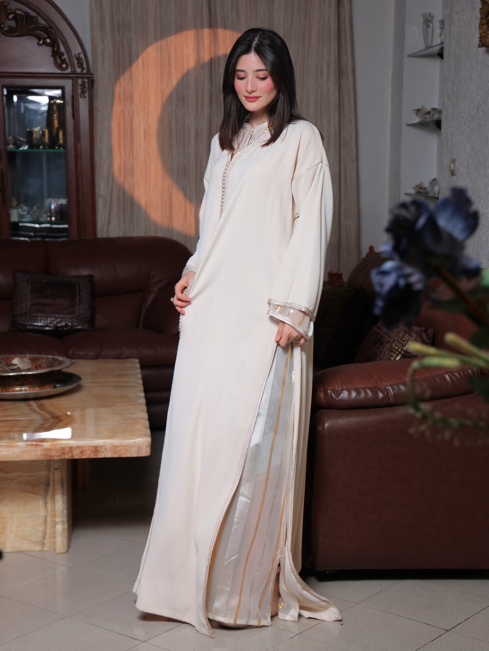 Abaya 3 piéce composé de :Haut en crépe de soie avec fintion